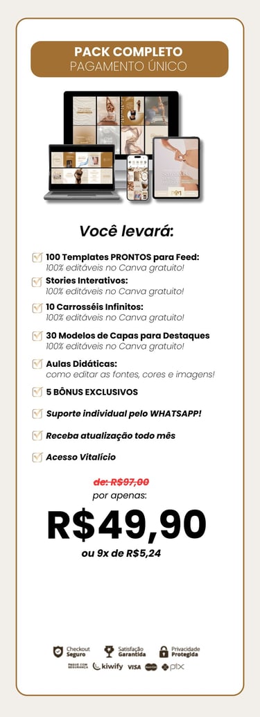 Facilite sua rotina: são mais de 100 posts prontos no Canva gratuito, lindos, estratégicos e feitos pra atrair clientes com muito mais facilidade!